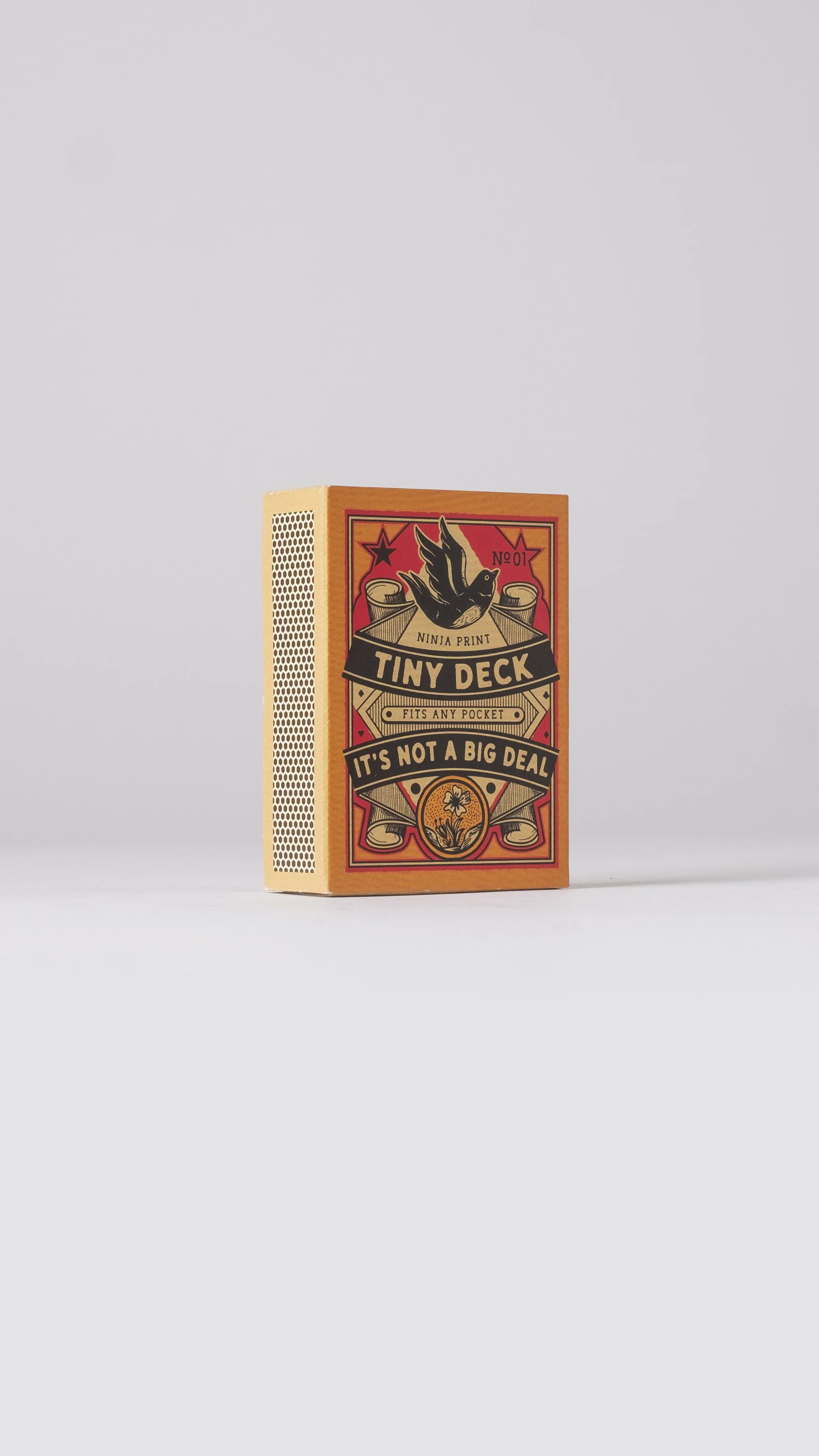 Tiny Deck är en serie tändstickskortlekar i sex olika motiv. Korten är exakt halva standardstorleken och hundra procent korrekta, tryckta på smooth 320 gsm spelkortskartong med blue core av högsta casinokvalitet. De är perfekta för resan, för barn, för patiens, och för samlare. Tiny Deck trycks i en begränsad upplaga. Passa på, innan de är slut för alltid!